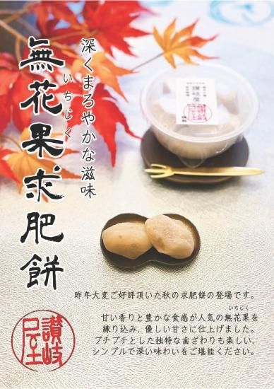 新登場!無花果求肥餅は、ふんわりとした求肥餅に甘く瑞々しい無花果を練り込んだ贅沢な一品です。この美味しい組み合わせが、秋の訪れと共に食卓を彩ります。求肥餅のやわらかな食感と無花果のほどよい酸味が絶妙にマッチし、口の中で広がる幸せをお届けします。