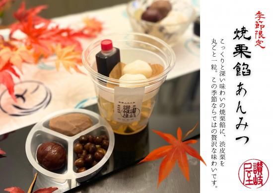 \\秋の贅沢な味わい、焼栗餡あんみつが登場//